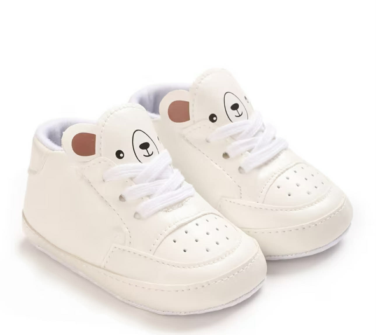 Material: Babysko med bjørn er laget i kunst skinn mens de uten bjørn er i bomull/polyester.