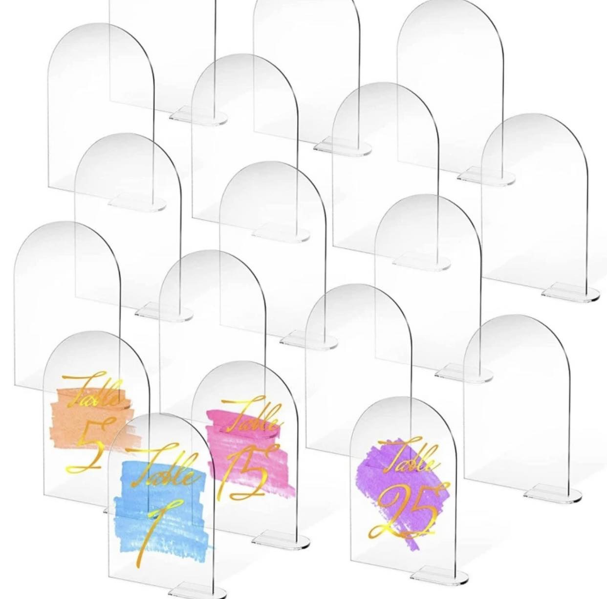 Bordnummer i tynn akryl med stativ. Perfekt til bryllups bord nummerering.