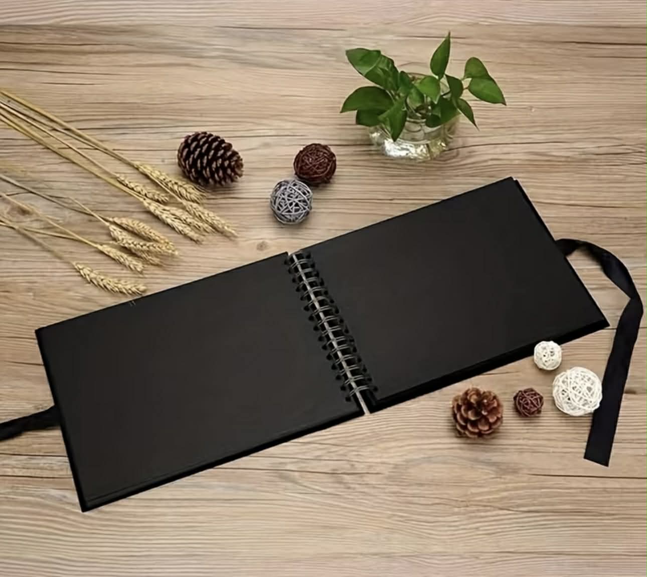 15 x 21,5 cm med solid hard omslag, elegant sløyfe lås, høy kvalitet tykt papir og dobbelt spiral binding. Også denne passer perfekt som fotoalbum.